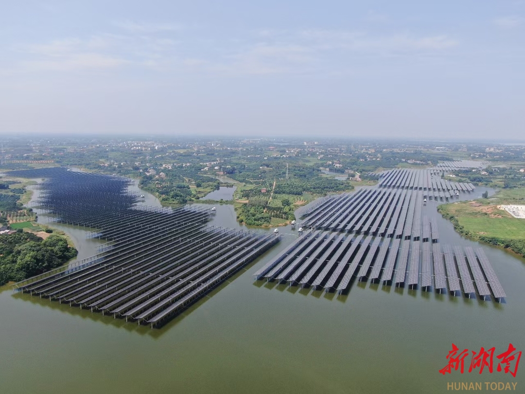 沅江市发展新能源产业。图为沅江市榨南湖光伏发电。 钟祖彪 摄