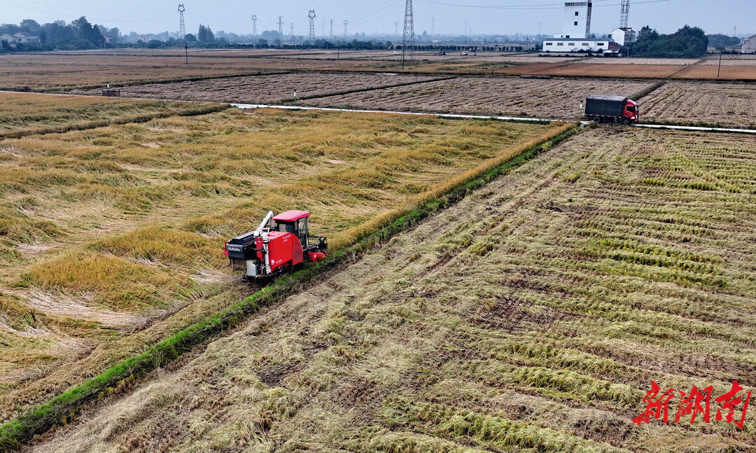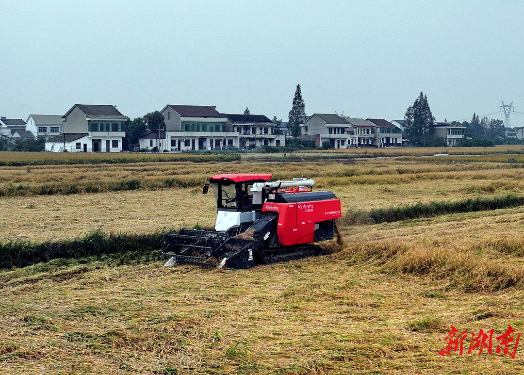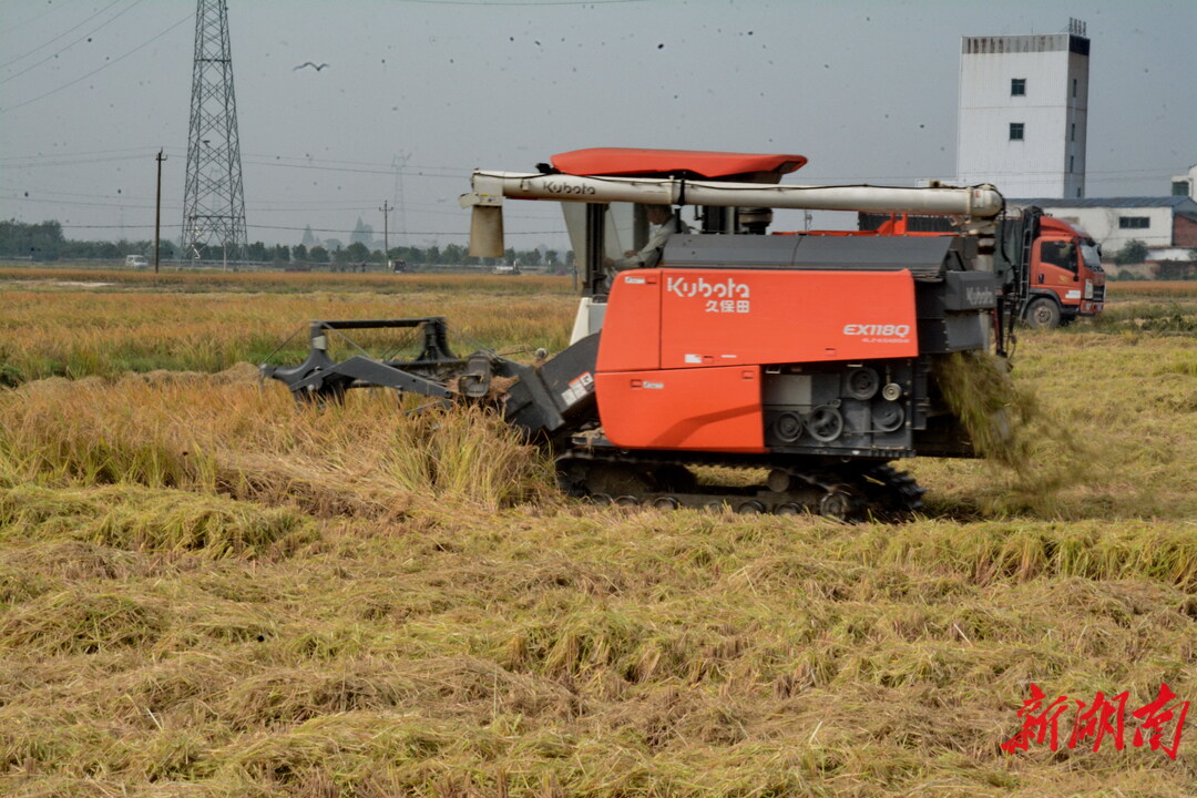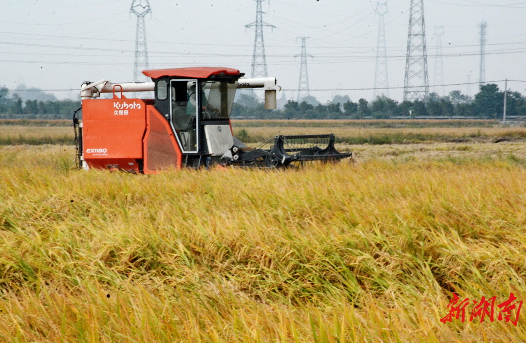 10月27日,益阳市资阳区沙头镇省级粮食生产万亩综合示范片晚稻开镰收割。