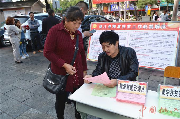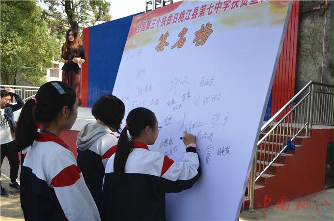 10月17日是第三个全国 “扶贫日”。这天,桃江县扶贫开发领导小组组织开展了“心系扶贫”万名群众签名活动,在党政大楼、桃江七中、新龙超市等地设点,组织群众签名,普及扶贫知识。县委书记汤跃武及县五大家在家领导参与活动。