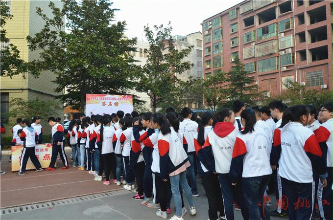 图为桃花江镇二中学生排队签名 刘琼 摄
