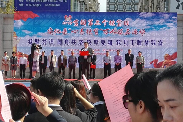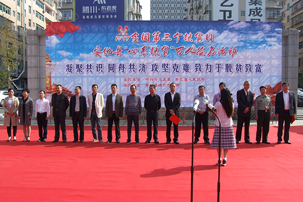 华声在线益阳分站10月17日讯(通讯员 谭红毅)10月17日是全国第三个“扶贫日”,安化县隆重举行“心系扶贫”万人签名活动。活动由安化县委、县政府主办,旨在引导社会各界关注贫困问题,关爱贫困人口,关心扶贫工作,号召全社会弘扬中华民族扶贫济困的传统美德和友善互助、守望相助的社会主义核心价值观,创新完善人人皆愿为,人人皆可为,人人皆能为的社会扶贫参与机制,为脱贫攻坚凝聚强大力量。