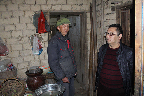 在低保救助户许谷余家,帮扶责任人陈茂辉详细询问了其家庭人员和收入情况,了解到许谷余知命之年才娶了个患有间歇性精神疾病妻子,生有一女,也是早早就已因贫辍学,看到他家徒四壁,陈设家具极其简陋,陈局长心情十分沉重,当场表示将向乡、村两级为他积极争取危房改造资金,改善住居环境,并勉励他相信党和政府的扶贫政策,振奋精神,保证好身体,好好培养女儿。同时表示因扶贫联系地点的改变,这次是第一见面,今后资阳国税将想尽千方百计全力帮助他以及联系点其他困难群众解决生产、工作和生活上的困难。
