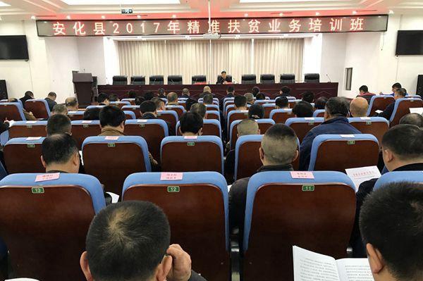 4月7日, 安化县2017年精准扶贫业务培训班正式开班。县委常委、县委办主任刘卫要求:务必始终保持攻坚定力,做好打硬仗、打苦仗的准备,扎实推进精准扶贫、精准脱贫工作任务。