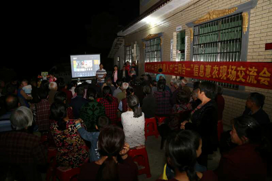 5月17日晚,中国电信桃江分公司光纤免费入户“三网合一”信息惠农现场交流会火热进行(摄影:张静)