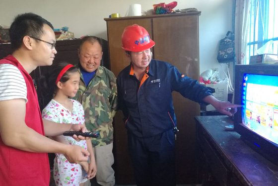 桃江电信石牛江支局长陈康为新装光纤用户进行ITV现场讲解演示