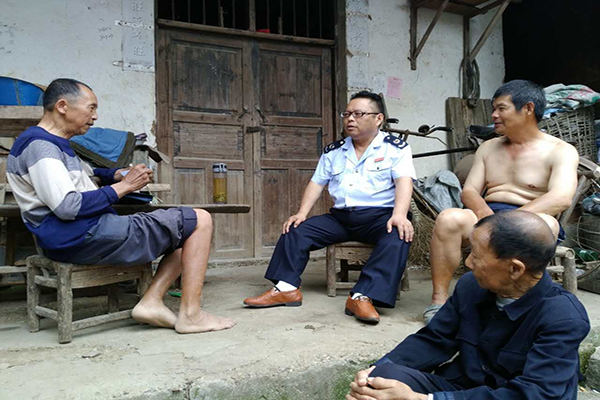 资阳区国税局局长陈茂辉与贫困户拉家常