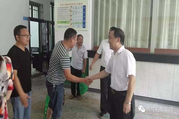 牵头慰问的桃江县委常委、组织部长杨美娜和县人大常委会副主任、县总工会主席龚卫山,率县总工会、县扶贫办一行,每到一处,亲手把白糖、绿豆、花生、芝麻等清凉防暑物资送到工作队员手中,与扶贫队员和村干部、困难群众亲切交谈,了解他们的工作、生产和生活状况,再三嘱咐扶贫工作队员一定要注意防暑,提高安全意识。拜托他们要进一步宣传好党的扶贫政策,同时鼓励贫困农户增加“造血”功能,巩固“输血”成果,激发活力,形成合力,早日铲除穷根,走上富裕之路。