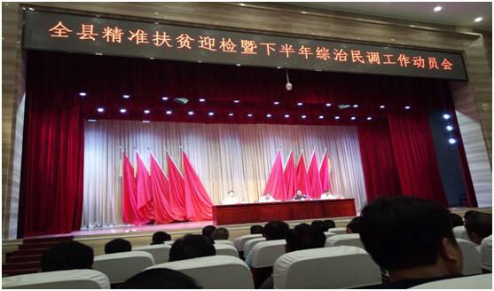 8月28日晚7点30分,南县在会议中心大会堂召开了全县精准扶贫迎检暨下半年综治民调工作动员会,会议由县委副书记詹再德主持,副县长孟祥胜和县政法委书记周尚亮分别就精准扶贫迎检和综治民调工作作了动员报告,县委副书记、县长黄育文就两项工作作了强调和指示。