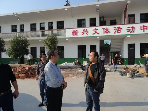 陈维国(右二)深入新兴村指导文体活动中心建设