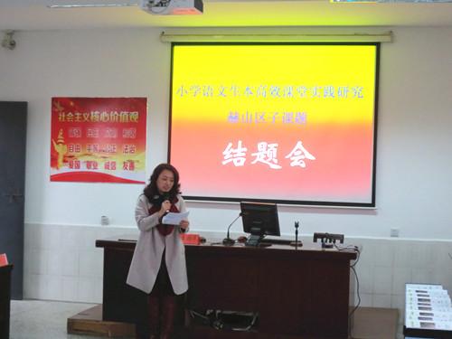 结题会上,赫山实验学校教师邓静萍、益师附小教师张益、衡龙桥镇学校教师熊凌、桃花仑小学教师徐利等4名子课题负责人分别就《小学语文阅读教学分层策略研究》《小学语文阅读教学个性化阅读实践研究》《面例式小学语文阅读教学实践研究》《小学语文“言意兼得”阅读教学实践研究》等子课题向各位专家汇报研究情况,并用大量图片资料展示了几年来的研究成果。