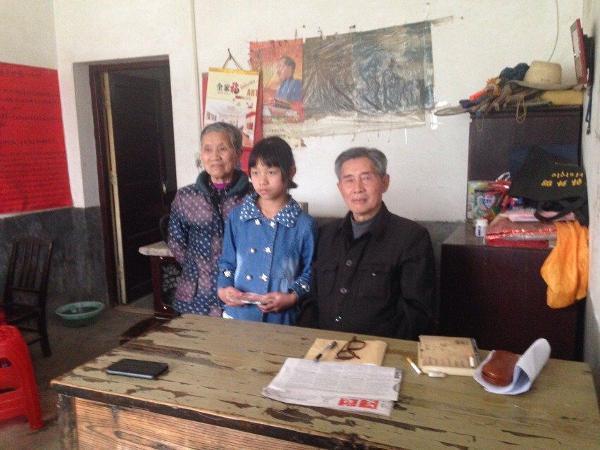 喻佳情,今年13岁,现就读于清塘铺镇七年级170班,弟弟喻勇权,今年8岁,可身高不足一米,在小佳情六岁时,贵州籍的妈妈离家出走,至今杳无音信,今年2月18日,身患糖尿病长期卧病在床的父亲不幸去世,目前,家中仅剩七十多岁高龄的爷爷奶奶与姐弟俩相依为命。这个不幸家庭的悲惨故事经“乐安风采”摄制组制作成视频在微信上广为传播,李广林老中医在知晓喻佳情一家的情况后,及时与学校领导联系,表达了愿意资助的意向。