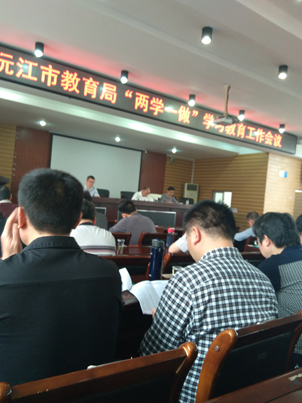 5月23日上午8点,沅江市教育局召开了两学一做学习教育工作会议。参加人员为全市各高中类、中心学校类学校及城区中小学校党总支(支部)书记及党务专干;局党委行政班子成员及机关全体在职党员、离退休支部委员等一百多人。会上,副局长黄敏同志解读中央省市"两学一做"学习教育方案,局党委书记.、局长胡经纬同志作了重要讲话.号召党员教师争做'四讲四有"合格党员,为沅江教育事业的腾飞作出自己应有的贡献。