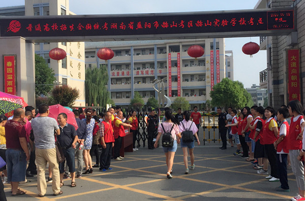 本网讯 (通讯员 刘江龙 曹灿辉 邱思)“有些考生忘带文具,有些考生需要降暑药品,我们都免费提供!”6月7日至8日,益阳市赫山区高考考点万源学校入口处,30余名身着红马甲的志愿者搭起了凉棚,为考生和家长提供多种贴心服务。