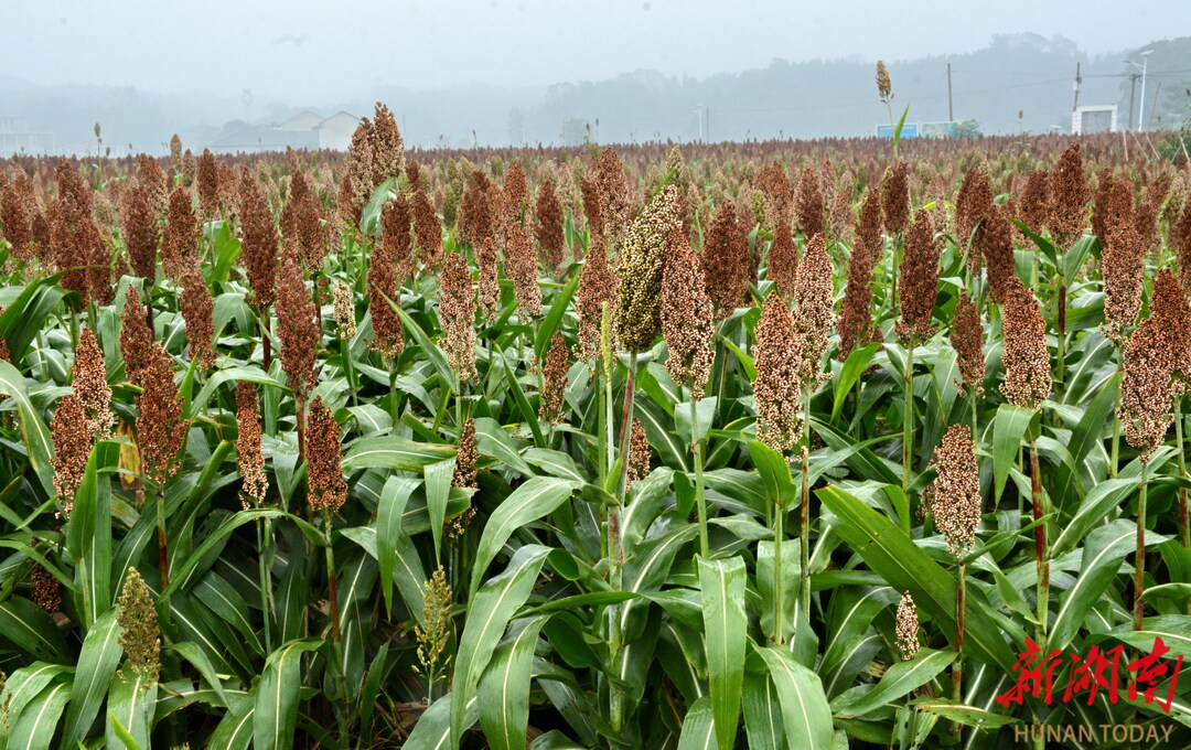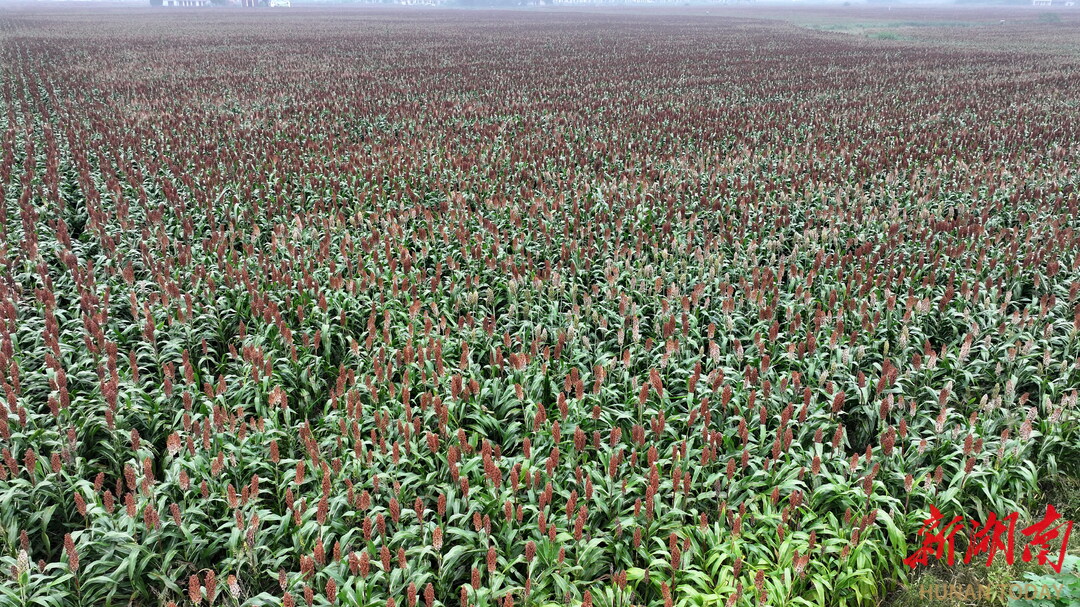 目前引进湖北省一龙头企业种植的数千亩红高粱长势喜人,丰收在望。(湖南日报·华声在线通讯员 宁党保 摄影报道)