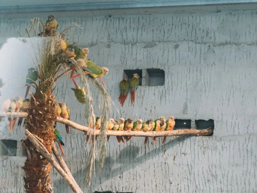 别错过回廊里的“鹦鹉才艺秀”!这里的鹦鹉个个是“社交达人”——会跟着你翩翩起舞,用清脆的嗓音说“你好”,甚至会叼走你手中的小零食~ 小朋友可以站在互动区,亲手给它们喂瓜子,解锁专属合影!游客刘娜感叹:“第一次和鹦鹉这么亲近,孩子开心得不想走!”