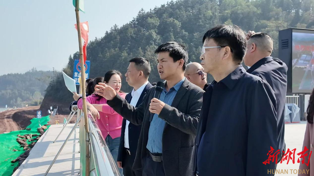 金塘冲水库作为省“十四五”水安全保障规划的标志性工程,是一座以防洪为主,兼具灌溉、发电、生态等综合效益的大型水利枢纽。视察组通过听取工程介绍、观看宣传片等方式,了解了水库建设进展、防洪效益以及预计完工时间等情况,并围绕水库未来的防洪调度、灌溉保障、生态补水功能,以及如何加强周边产业联动、提升综合效益等问题与项目负责人深入交流。