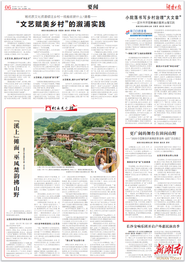 即兴创作一旁,是一大片喜获丰收的稻田。湖南省文学艺术界联合会副主席、湖南省舞蹈家协会主席杨霞说:“希望舞蹈艺术家走进更广阔的舞台,在田间、山野和景区,在老百姓的身边,去创作、去舞动。”