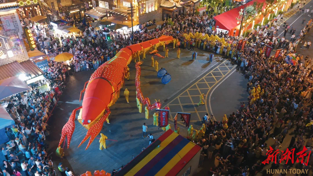 益阳明清古巷景区非遗表演“虾子起拱”。