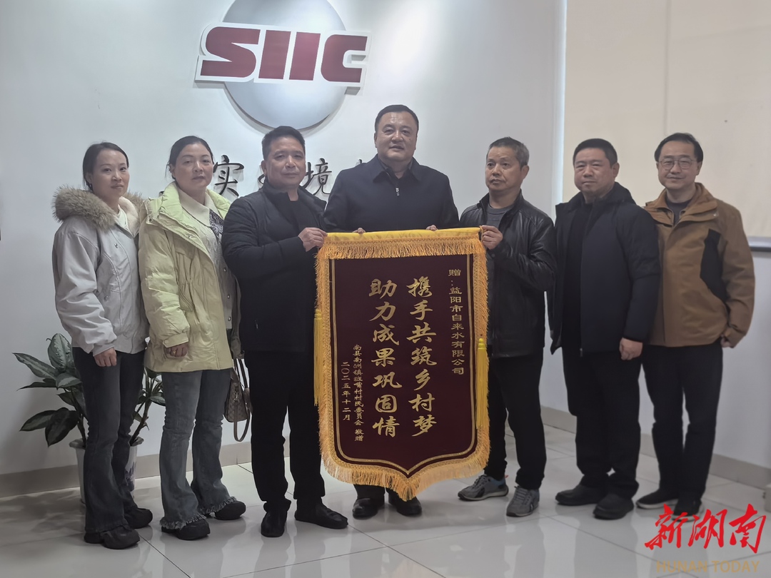 湖南日报·新湖南客户端12月31日讯(通讯员 谌英)近日,南县南洲镇班嘴村村干部与村民代表一行专程来到益阳市自来水有限公司,将一面绣有“携手共筑乡村梦,助力成果巩固情”的锦旗送至公司党委书记、总经理朱庆伟手中。锦旗虽轻,情意厚重,承载着全村4863名村民对公司的深深谢意。