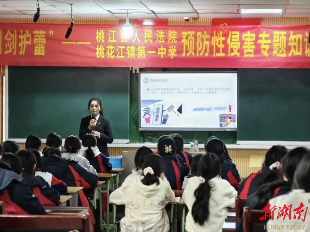 湖南日报·新湖南客户端1月20日讯(通讯员 陈书怡)近日,桃江法院刑庭干警走进桃花江镇第一中学,以“做自己青春的守护骑士:女生自我保护指南”为主题,开展了一场生动实用的防性侵安全教育讲座,为该校200余名女生送上专属“安全防护礼包”,筑牢青春成长防线。
