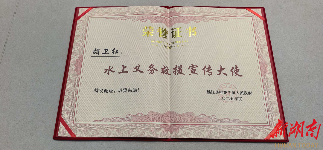 此外,32位认真值守、无私奉献的队员获得了“值勤模范”荣誉证书及奖励。刘新跃、吴新华因表现尤为突出获颁“突出贡献奖”。现场还表彰了长期跟踪报道救援事迹的桃江县融媒体中心记者胡卫红,授予其“水上义务救援宣传大使”称号;并向爱心企业桃花村餐饮集团赠送锦旗,感谢其为值班人员免费提供晚餐。