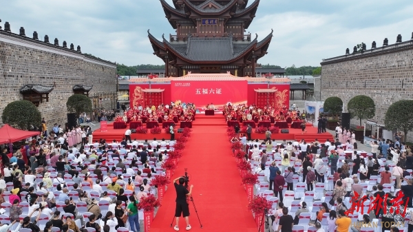 益阳市2025年国潮集体婚礼在明清古巷举行。徐嵩 罗娟 摄