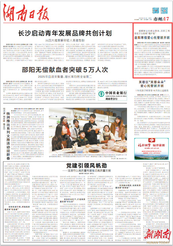 2月2日,益阳共青团“伙伴计划”寒假爱心托管班在该市9个服务点位开班,旨在缓解新业态就业群体、双职工等家庭子女假期“看护难”的问题。托管班共招募124名志愿者,服务365名6至12岁学龄期儿童。