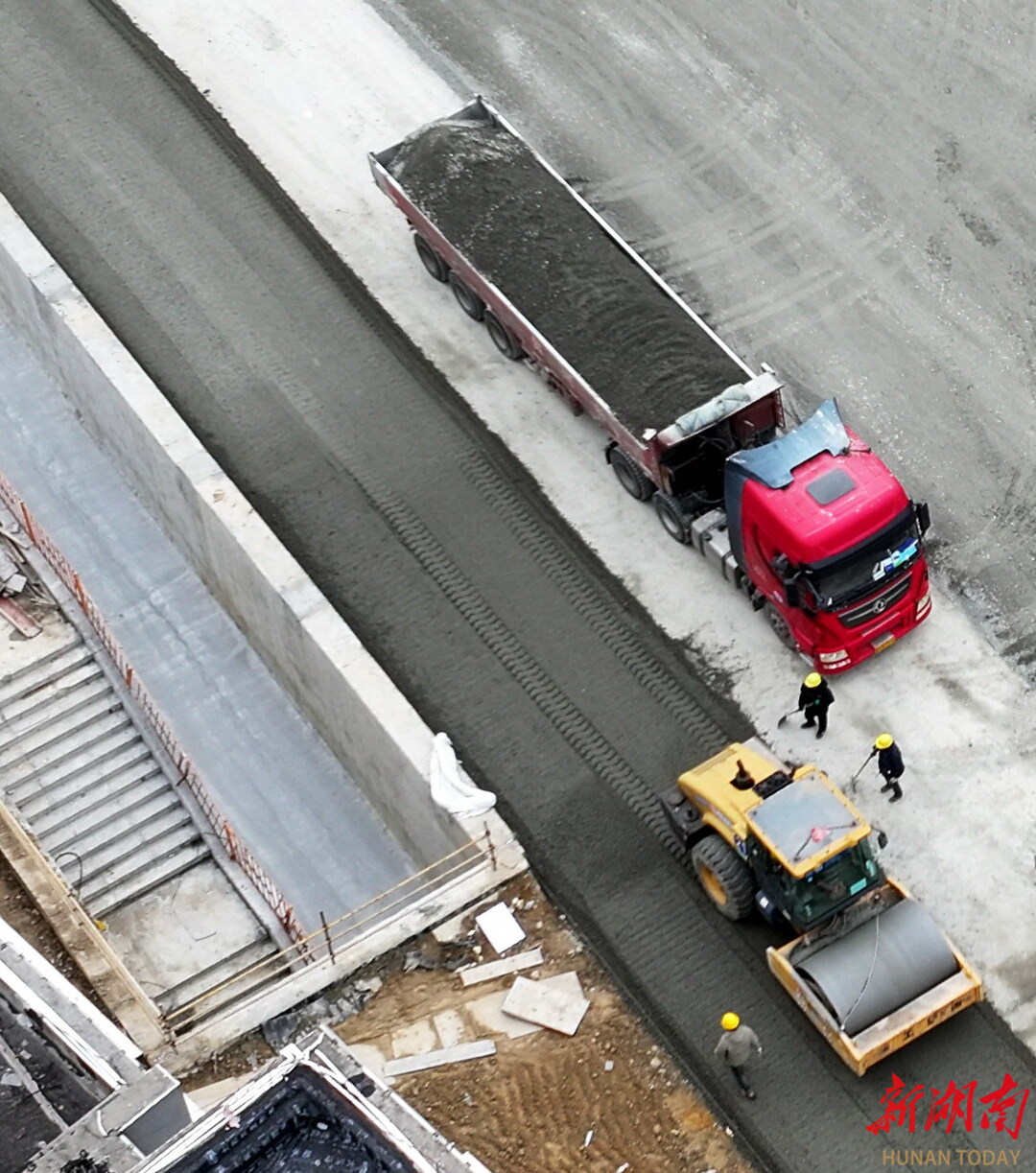 2月2日,施工人员驾驶大型机械在益阳市资阳区天成广场地下人行通道工地施工。