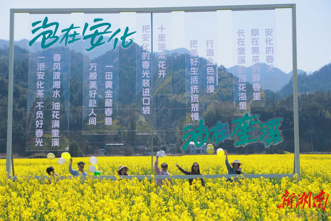 湖南日报·新湖南客户端3月11日讯(记者 杨军 通讯员 陈垚 夏余艺 曹静) 今天,2026湖南油菜花节安化分会场在安化县奎溪镇启幕。本次活动以“泡在安化 油在奎溪”为主题,以花为媒、以茶为韵、以节兴旅,将千亩油菜花海、安化黑茶非遗、梅山民俗与乡村振兴成果深度融合,用一场兼具如画美景、庄重仪式、创新玩法与富民深意的春日盛典,打造独具安化辨识度的文旅IP,奏响农文旅融合赋能乡村振兴的时代强音。