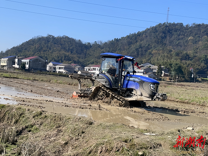 湖南日报·新湖南客户端3月12日讯(通讯员 刘育东 刘裕玲 刘艳莹)薄雾轻笼,春意渐浓。3月11日,桃江县沾溪镇万亩高标准农田示范片,一幅生机勃勃的“春耕图”正在这里全面铺展:旋耕机在田垄间往来穿梭,翻起一道道松软的新泥;集中育秧大棚内,自动化播种流水线高速运转,工人们正有序摆放育秧盘;田埂上,农技人员正俯身指导农户调试设备,耐心讲解关键技术要点。