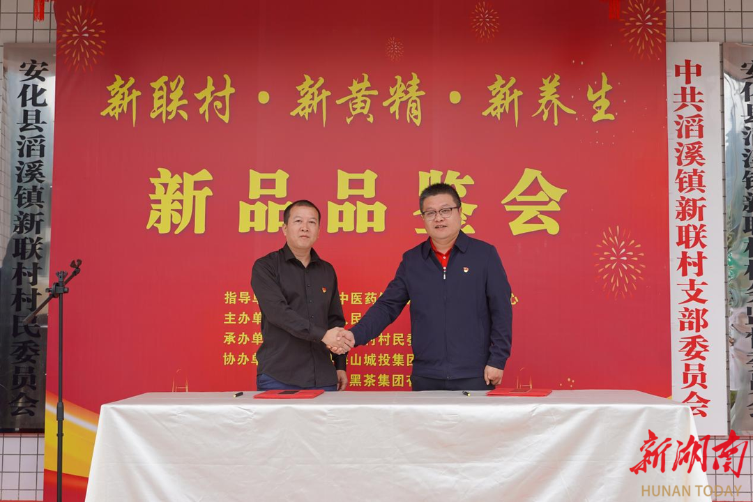 新联村集体经济与安化黑茶集团签订合作协议。